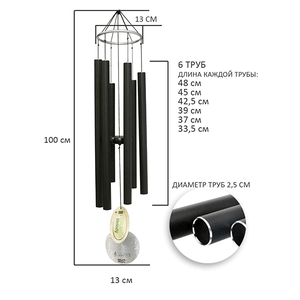 Музыка ветра 6 труб 100 см чёрная с серебром