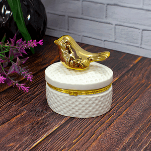 Шкатулка Пташка 8х9 см серия Эконом белая с золотом